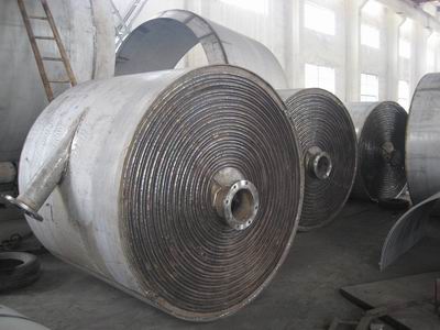 螺旋板式換熱器通過多年實踐使用證明,確是一種高效換熱設(shè)備,它適用于化學、石油、溶劑、醫(yī)藥、食品、輕工、紡織、冶金、軋鋼、焦化等行業(yè)中應用。換熱器吸取當代國際先進技術(shù),經(jīng)獨特的優(yōu)化設(shè)計制造的液-液、汽-水熱交換器。產(chǎn)品結(jié)構(gòu)工藝按瑞典“阿爾法拉代”公司標準,螺旋板端面采用折邊氬弧焊,“頂距柱”專用工藝為電容蓄電接觸器,提高了內(nèi)在和外表的質(zhì)量得到“寶鋼”認可,能取代進口。 不可拆式螺旋板換熱器是按-機部標準JB/TQ724-89不可拆式螺旋板式換熱器形式,基本參數(shù)與尺寸的規(guī)定而進行設(shè)計的,它具備制造簡單,成本低,體積小和傳熱性能好等優(yōu)點,但也有它的不足之處,例如不能進行機械清洗,壞了不易檢修等,選用者應根據(jù)工程的實際情況選取具體的設(shè)備使之最為有效。 結(jié)構(gòu)及性能 1、本設(shè)備適用于:液-液,氣-氣,氣-液對流傳熱可用于蒸汽冷凝和液體蒸發(fā)傳熱,化工,石油,醫(yī)藥,機械,電力,輕工和紡織等工業(yè)部門均可選用。 2、本設(shè)備由兩張鋼板卷制而成,形成了兩個均勻的螺旋通道,兩種傳熱截止可進行全逆流流動,適用小溫差傳熱,便于回收低溫熱源并可準確地控制出口溫度。 3、在殼體上的接管是切向結(jié)構(gòu),局部阻力小,螺旋通道的曲率是均勻的,流體在設(shè)備內(nèi)流動沒有大的換向,總的阻力小,因而可提高設(shè)計流速使之具備較高的傳熱能力。 4、螺旋通道的端面是焊接密封的,密封性能好,結(jié)構(gòu)可靠。 5、不易檢修,尤其是內(nèi)部板出現(xiàn)問題時極難修理,有些廠把設(shè)備兩端焊縫全部車掉,重新將板展平補焊后再卷制,這樣做消耗的工時太大,因選用螺旋板式換熱器防腐是十分重要的。 6、不能進行機械清洗,生產(chǎn)實踐證明,螺旋板換熱器與一般列管式換熱器相比是不容易堵塞的,尤其是泥沙、小貝殼等懸浮顆粒雜質(zhì)不易在螺旋通道內(nèi)沉積,分析其原因;一是因為它是單通道雜質(zhì)在通道內(nèi)的沉積一形成周轉(zhuǎn)的流還就會提高至把它沖掉,二事故因為螺旋通道內(nèi)沒有死角,雜質(zhì)容易被沖出。 7、因為螺旋通道內(nèi)有定距柱支撐通道間距,甩以不得有纖維狀雜質(zhì)(棉紗,草棍,樹葉等)進入換熱器內(nèi)部。 8、嚴格控制冷卻水出口溫度在結(jié)垢溫度以下。 9、常用的清洗方法是用蒸汽吹凈或堿洗,蒸汽吹入要向接管,把雜質(zhì)從設(shè)備內(nèi)吹出,很多使用廠認為這是行之有效的方法。 可拆式(Ⅱ型、Ⅲ型)螺旋板式換熱器 結(jié)構(gòu)原理與不可拆式換熱器基本相同,但其中通道可拆開清洗,兩端加封頭密封。特別適用有粘性、有沉淀液體的液與液交換,以及氣一液,蒸汽冷凝。由于可拆式換熱器需增添封頭、法蘭等部件,設(shè)備成本比不可拆式換熱器稍大。 基本參數(shù) 螺旋板式換熱器的公稱壓力PN規(guī)定為0.6、1、1.6、2.5Mpa(即原6、10、16、25kg/cm2)(系指單通道隨的最大工作壓力)試驗壓力為工作壓力的1.25倍。 螺旋板式換熱器與介質(zhì)接觸部分的材質(zhì),碳素鋼為Q235A、Q235AF,不銹鋼酸鋼為SUS321、SUS304。其它材質(zhì)可根據(jù)用戶要求選定。 允許工作溫度:碳素鋼的t=0~+350℃,不銹鋼酸鋼的t=-40~500℃,升溫降壓范圍按壓力容器的有關(guān)規(guī)定。選用本設(shè)備時,應通過洽當?shù)墓に囉嬎,使設(shè)備通道內(nèi)的流體達到湍流狀態(tài)。(一般液體流速1m/Sec氣體流速10m/Sec)。 單臺設(shè)備不能滿足使用要求,可以多臺組合使用,但組合時必須符合下列規(guī)定: 并聯(lián)組合,串聯(lián)組合:設(shè)備和通道間距相同;旌辖M合:一個通道并聯(lián),一個通道串聯(lián)。 不銹耐酸鋼制PN0.6、1.6MPa不可拆式(Ⅰ型)螺旋板換熱器。 | |