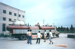 | 60噸臥式濃硝酸貯罐裝運(yùn)出廠 | 50立方米立式冰醋酸鋁貯罐裝運(yùn)出廠 |